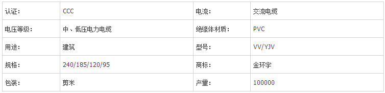金环宇电缆 VV 、YJV电力电缆参数说明: