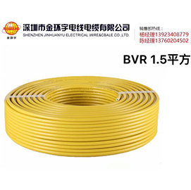 金环宇BVR 1.5平方电线中文名:铜芯聚氯乙烯绝缘软护套电线。1.5表示BVR电线的横截面积。金环宇bvr系列电线常用于家装布线。