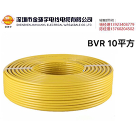 金环宇BVR电线 10平方中文名:铜芯聚氯乙烯绝缘软护套电线。10表示BVR电线的横截面积。金环宇bvr系列电线常用于家装布线。