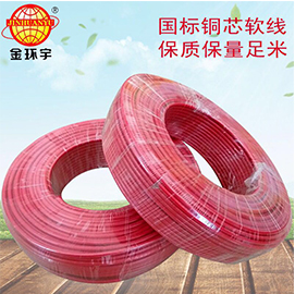金环宇BVR电线 10平方铜芯聚氯乙烯绝缘软电线,电缆生产厂家金环宇以上型号bvr电线还可以生产阻燃性(ZR)/耐火型(NH)l两种特性。适用于交流电压450/750V及以下动力装置、日用电器、仪表及电信设备用的电缆电线。